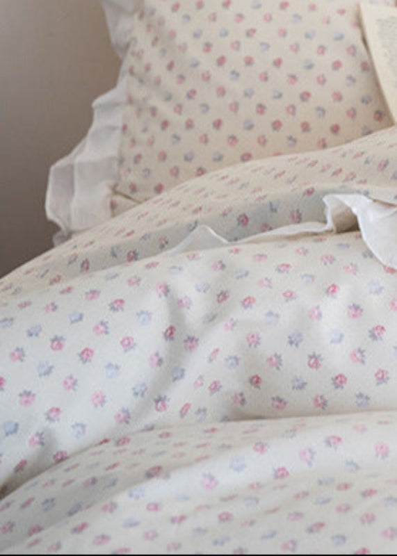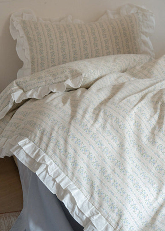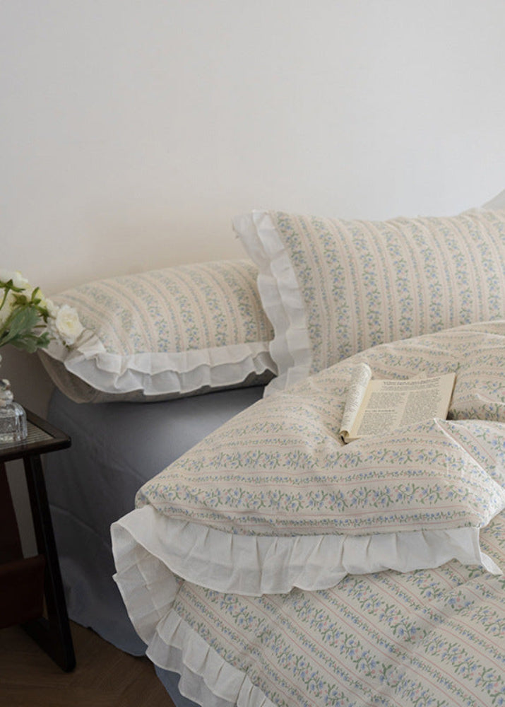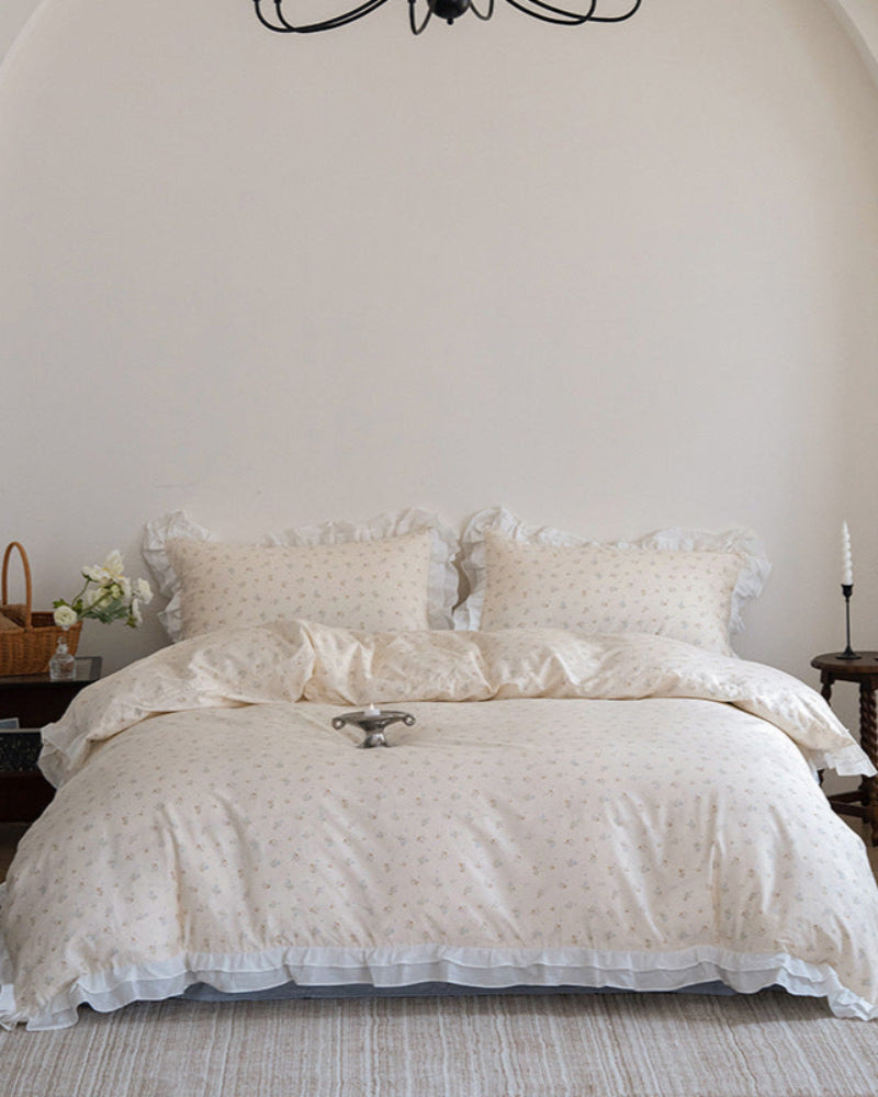 Annie Lace Ruffle Floral Bedding Set / Cream Blue
