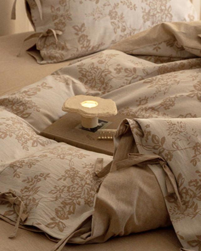 Bonnie Ribbon Bow Tie Floral Bedding Set / Dark Gray