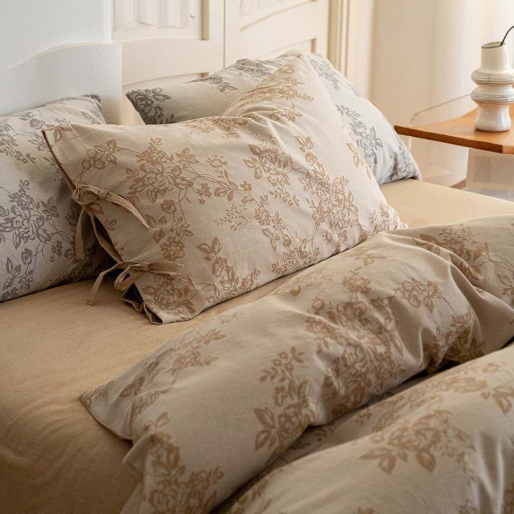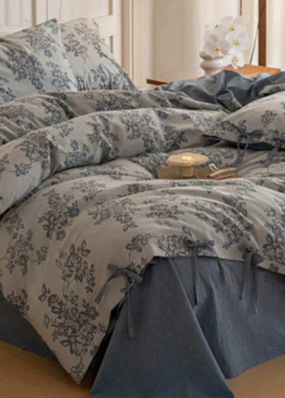 Bonnie Ribbon Bow Tie Floral Bedding Set / Light Gray