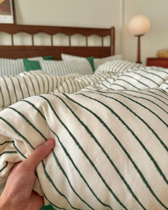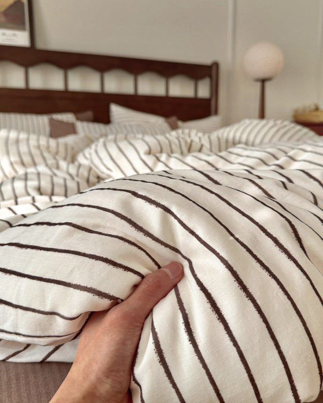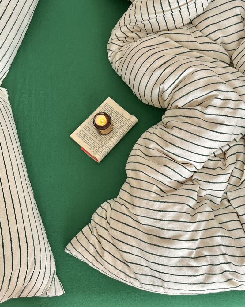Refresh your bedroom with Ever Lasting's Camille French Stripe Bedding Set, a perfect mix of coquette style and cottagecore warmth. Made from soft washed cotton, it offers breathable comfort and a relaxed, lived-in feel that improves with time. Adorned with delicate French stripe and subtle vintage notes, this lightweight, cozy set brings a playful sophistication to any space. Each duvet cover is designed with corner ties and a hidden zipper for lasting security and comfort.