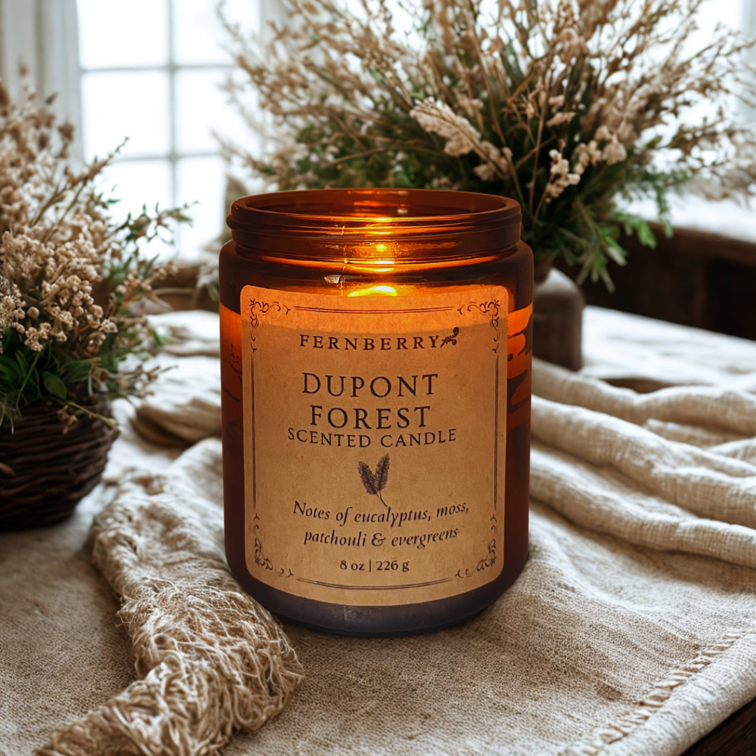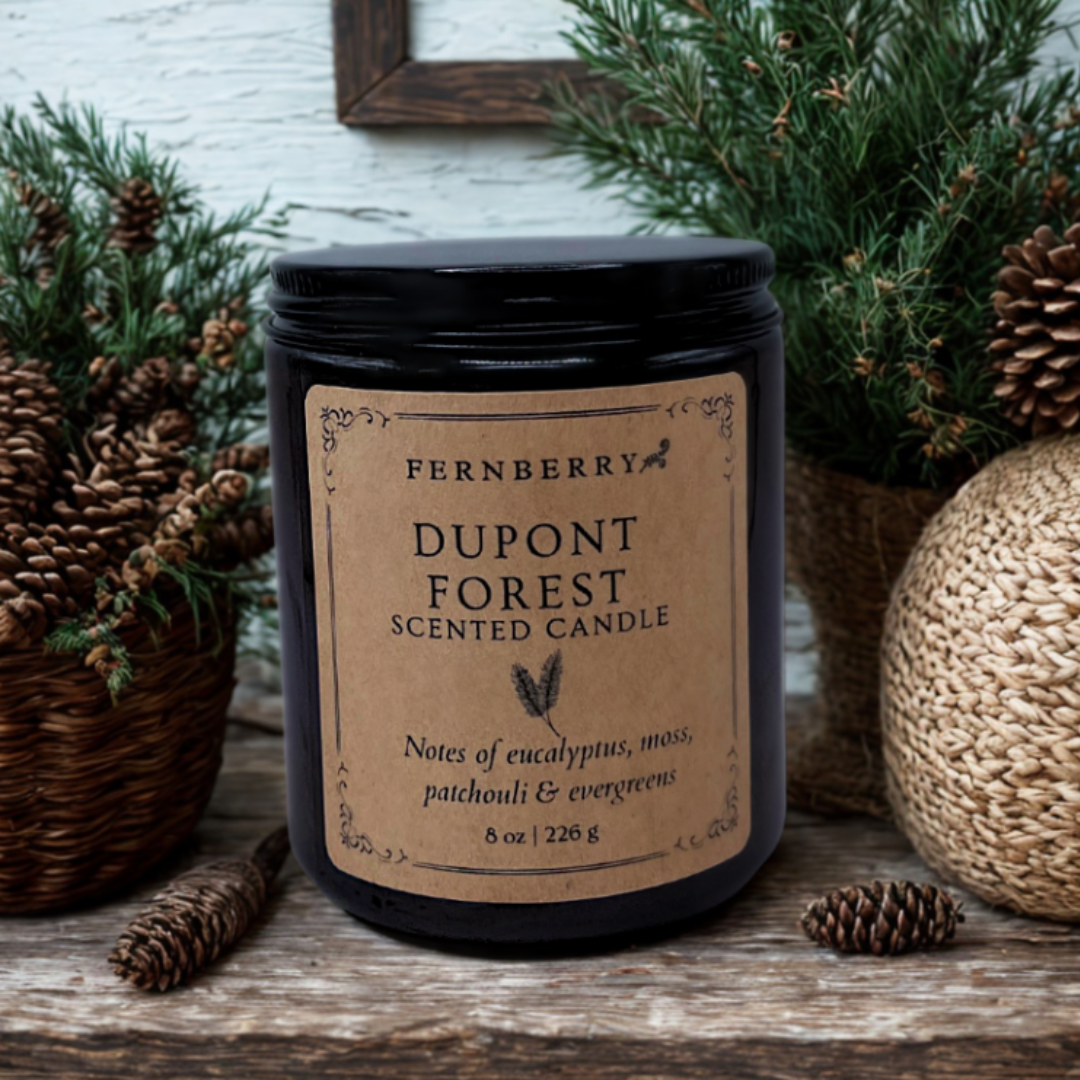 Hand-poured just outside Asheville, NC, this 8 oz candle features a low-smoke crackling wood wick and burns for approximately 45–55 hours. Made with premium essential and fragrance oil blends that are always phthalate-free, Fernberry candles deliver a clean, immersive scent experience.