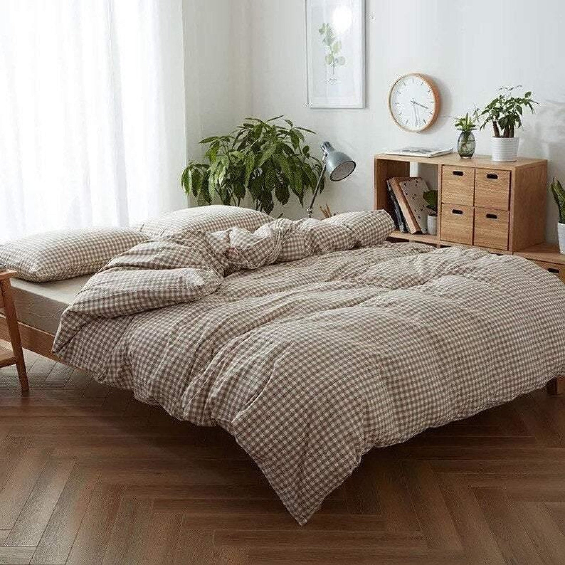 Gingham Bedding Set / Brown