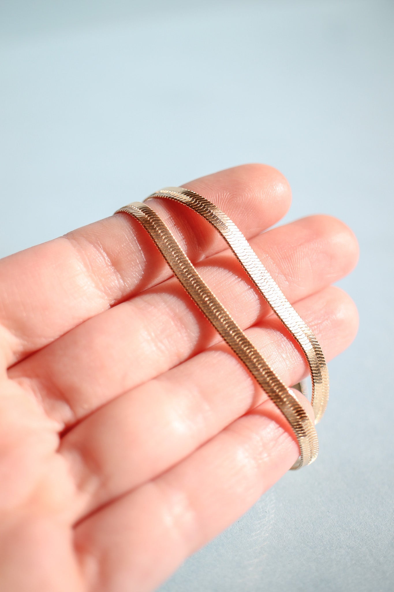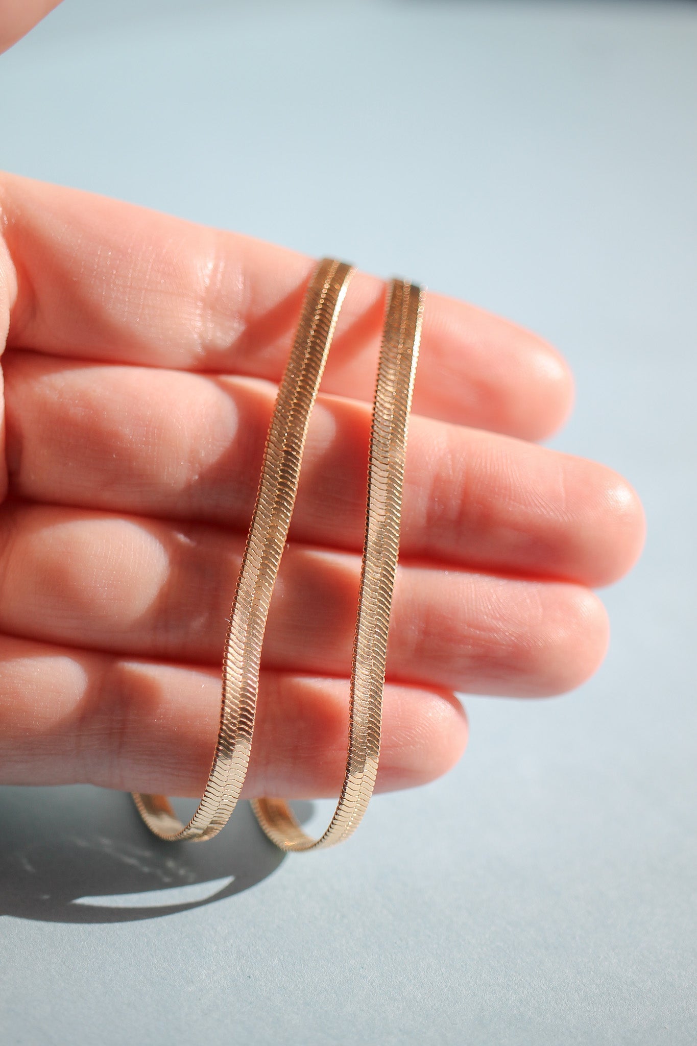 The Hestia Necklace is the perfect pick to add some subtle sparkle to your everyday outfit! Crafted from 18k gold filled chain in a 4mm herringbone pattern, this luxe piece looks gorgeous alone or stacked with other favorite necklaces. Plus, it's crafted with high quality materials and is tarnish-proof, hypoallergenic, and nickel free. Basically its an heirloom quality piece that you'll be able to pass down for generations to come. Can be worn from 16 to 18 inches.