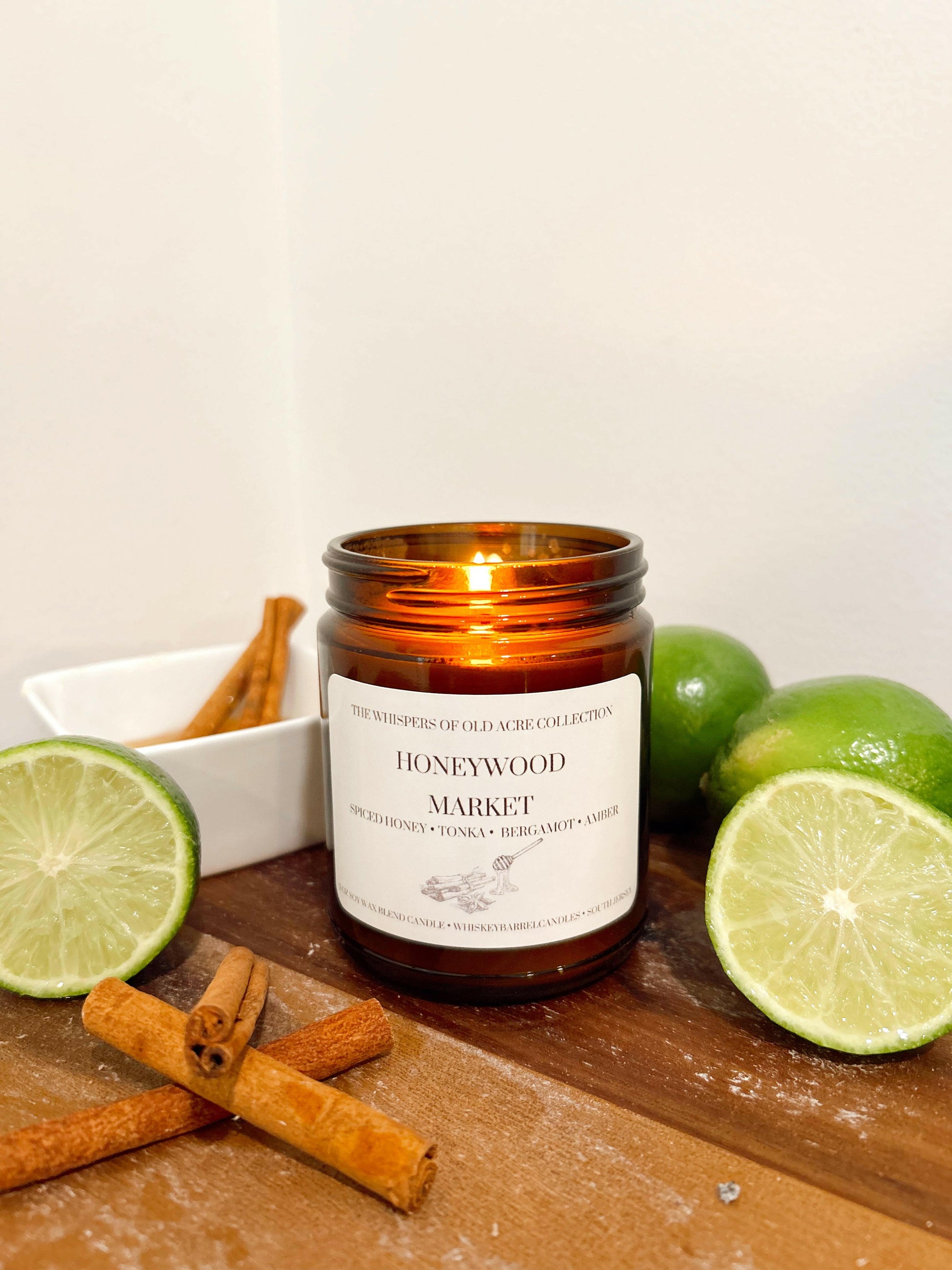Honeywood Market 9oz candle made with soy wax and beeswax: