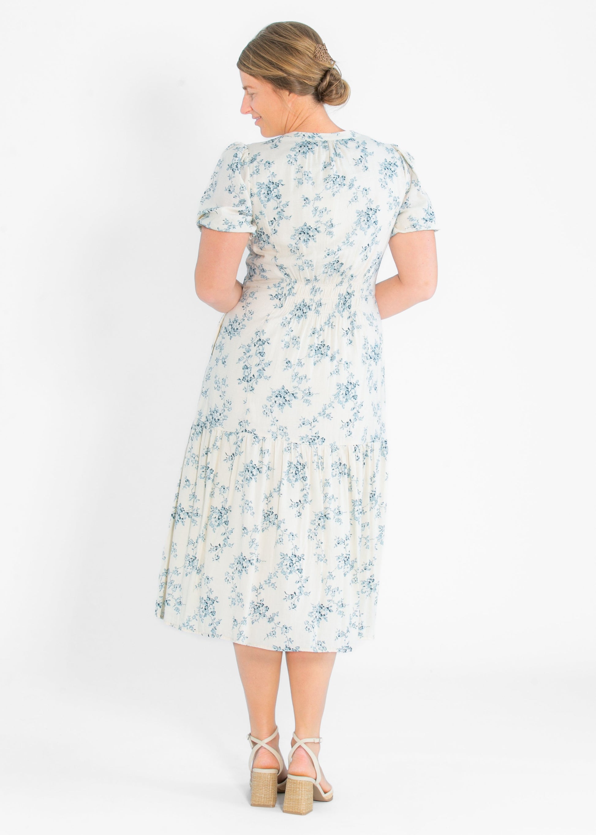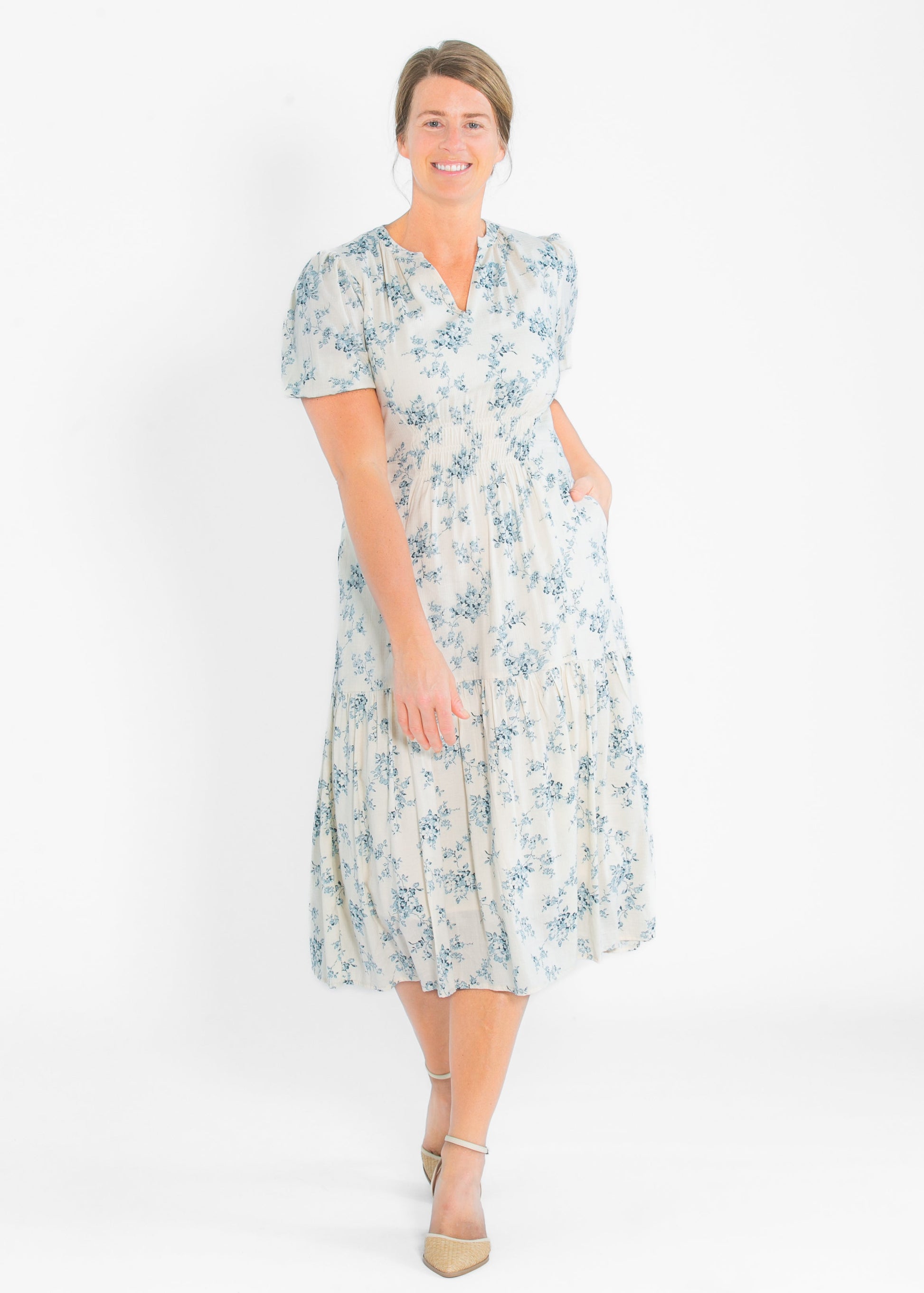 The Katrina Half Sleeve Floral Maxi Dress blends modest elegance with everyday comfort. Made from breathable cotton blend, it features a soft floral print, smocked waist, and tiered skirt. With short sleeves and a graceful V-neckline, this versatile dress is perfect for both church and dressier occasions all year round!