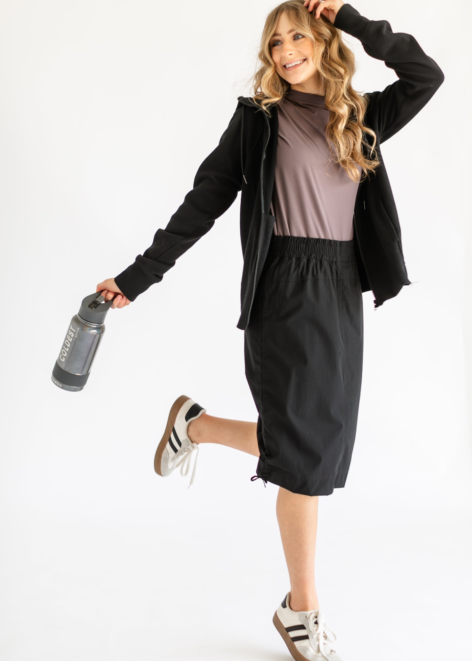 The Kia Athletic Short Sleeve T-Shirt is the softest tee you'll ever wear, crafted from enhanced Ultra Blend fabric for all-day comfort. With a ribbed crew neckline, side slits, and a relaxed silhouette, it’s perfect for workouts, lounging, or casual outings. The modest cropped length and elevated finishes make it effortlessly versatile, pairing seamlessly with activewear or everyday staples. Available in classic black and mulberry, this go-to tee is designed for movement, style, and ultimate ease.