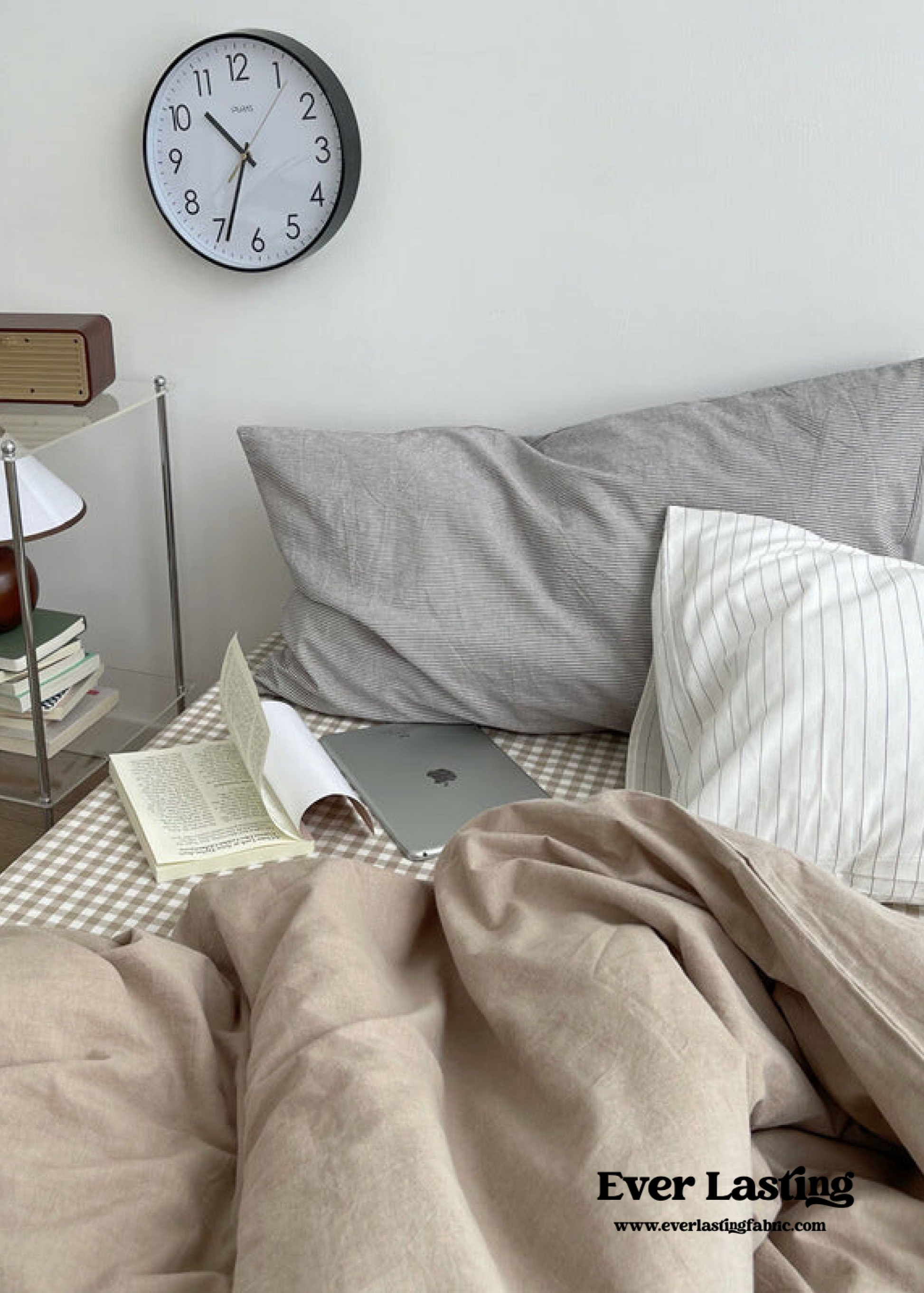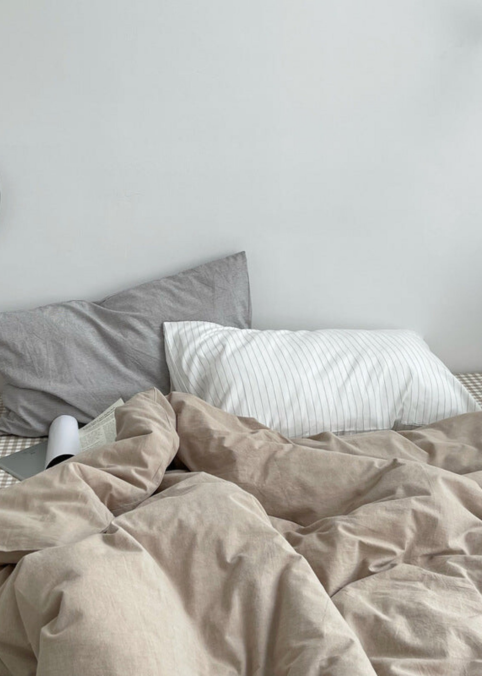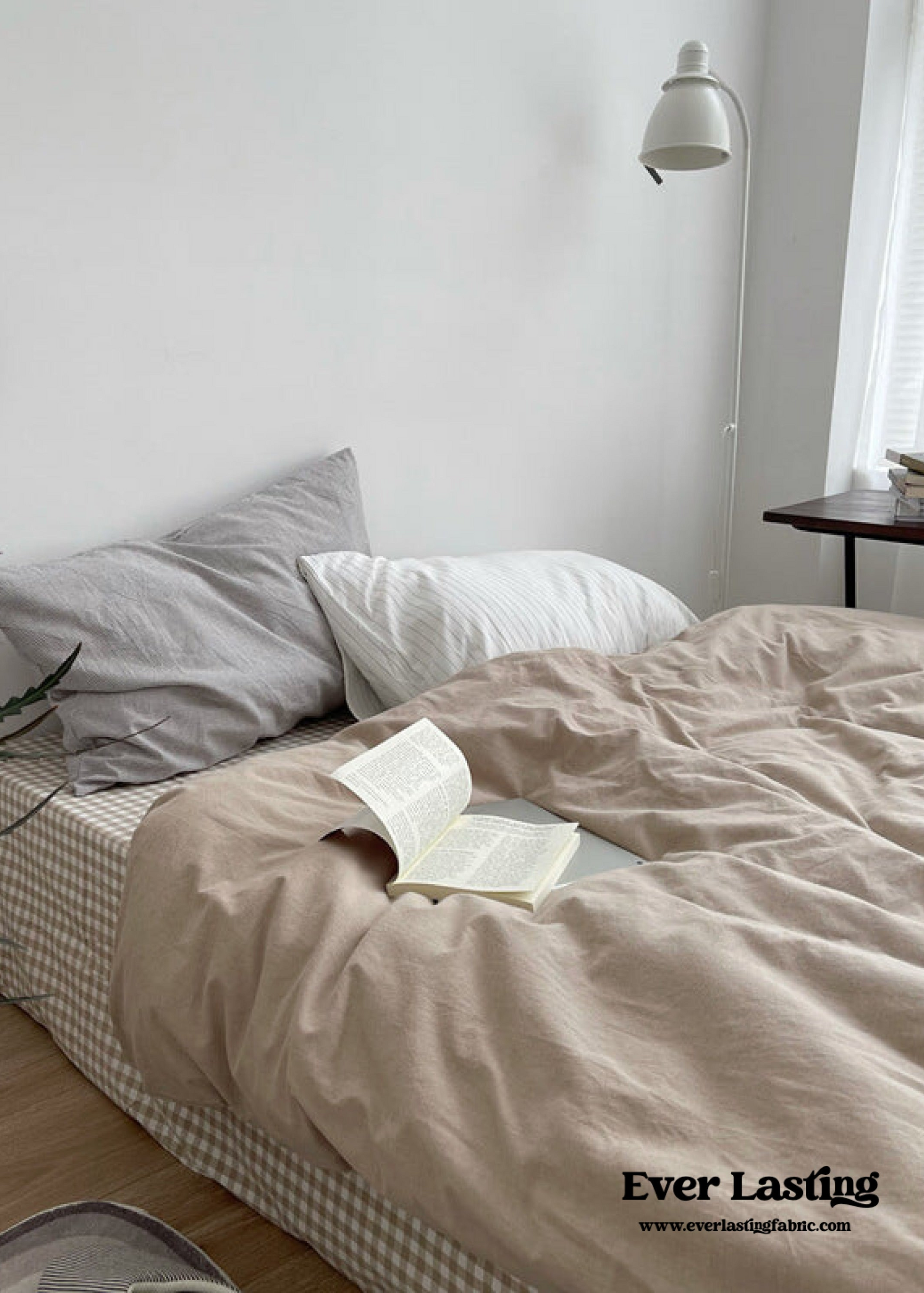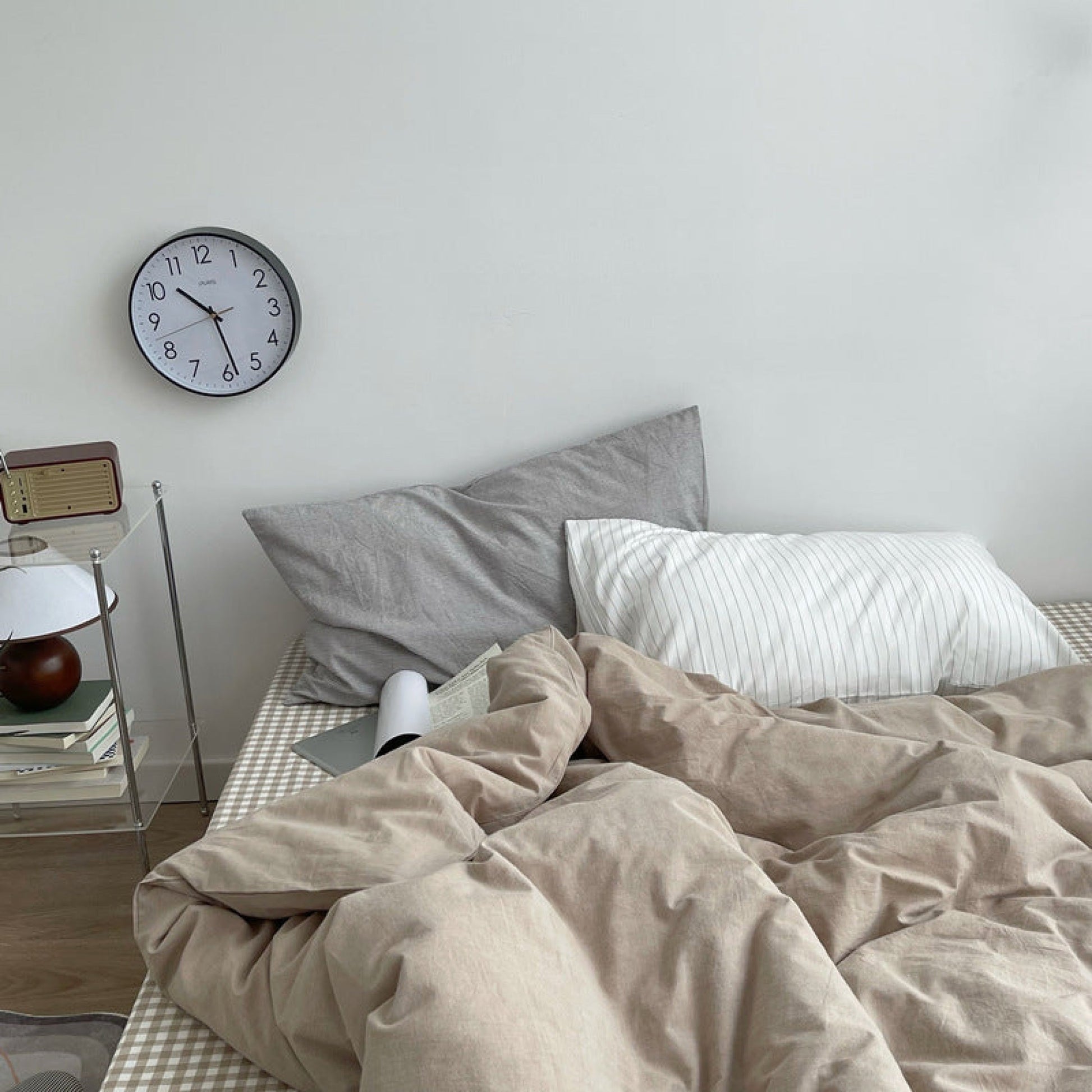 Minimal Mixed Gingham Bedding Set / Khaki
