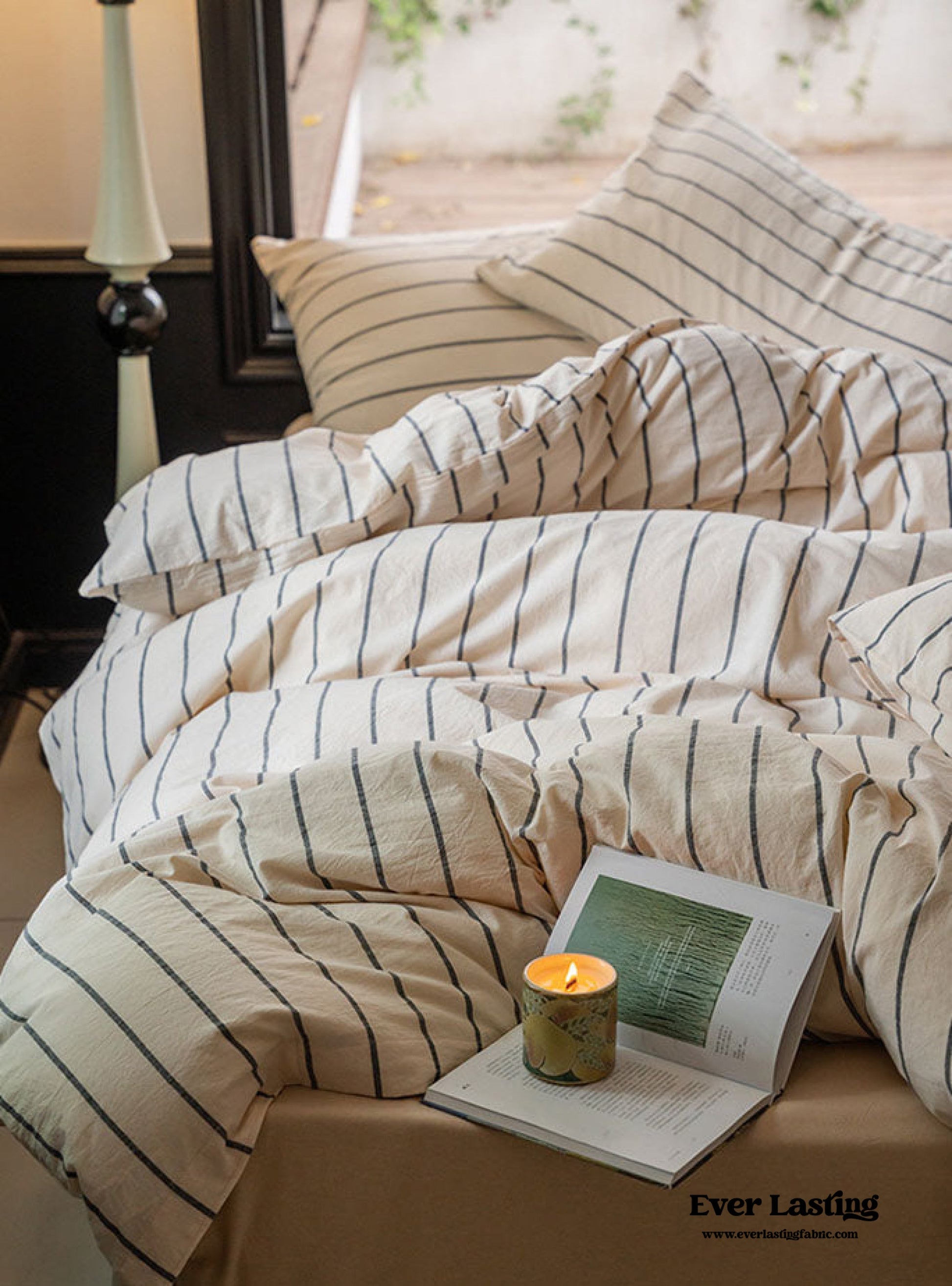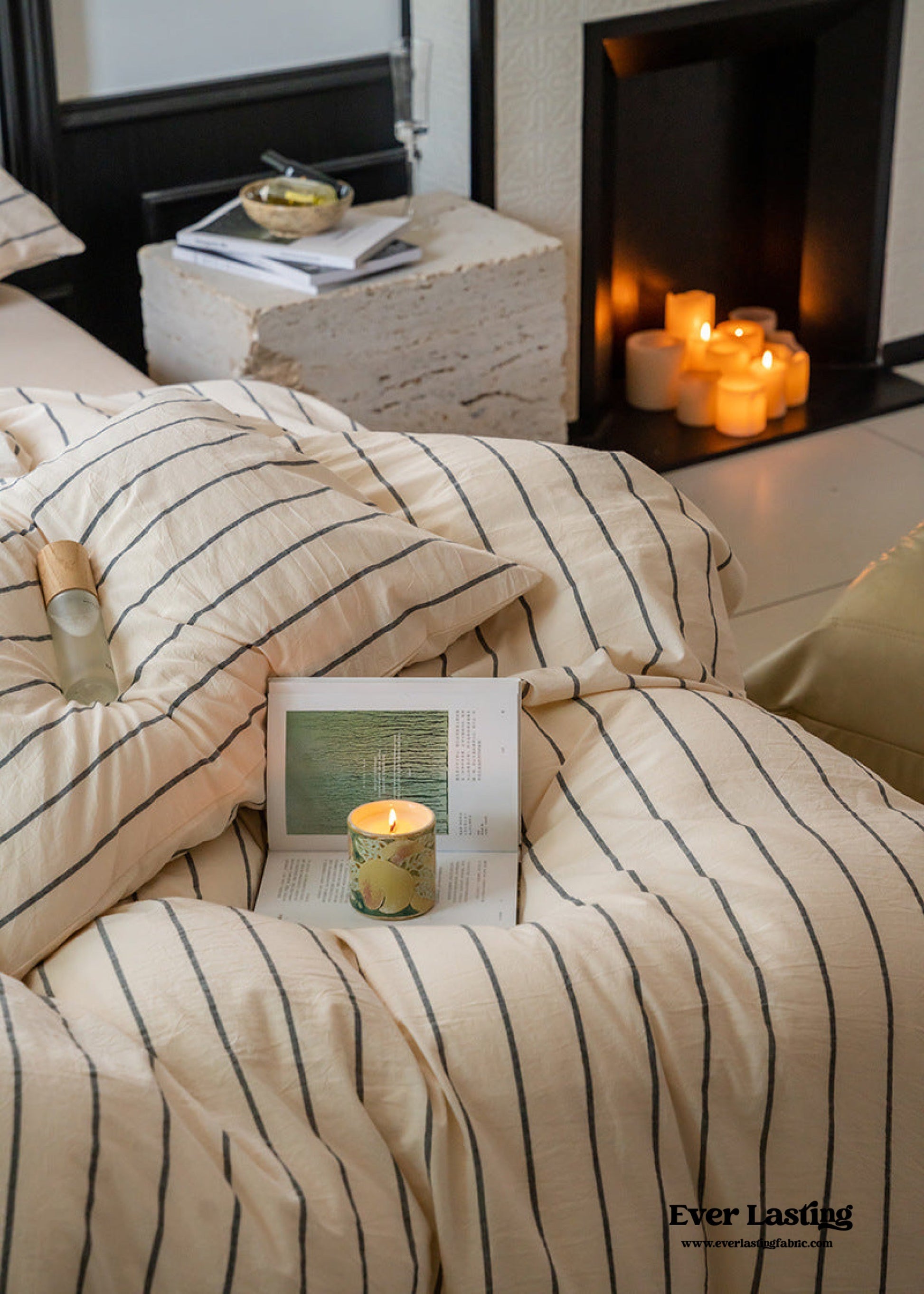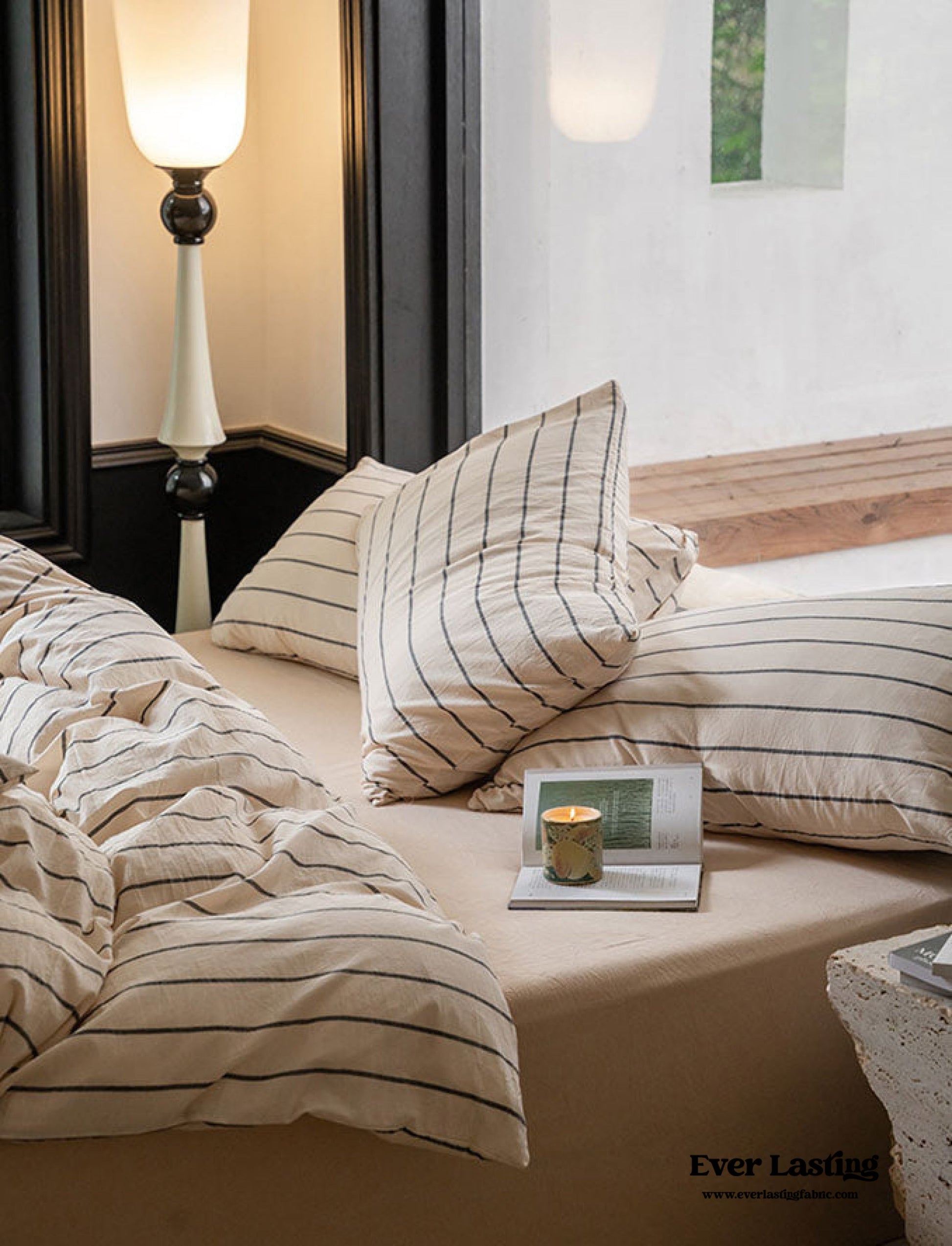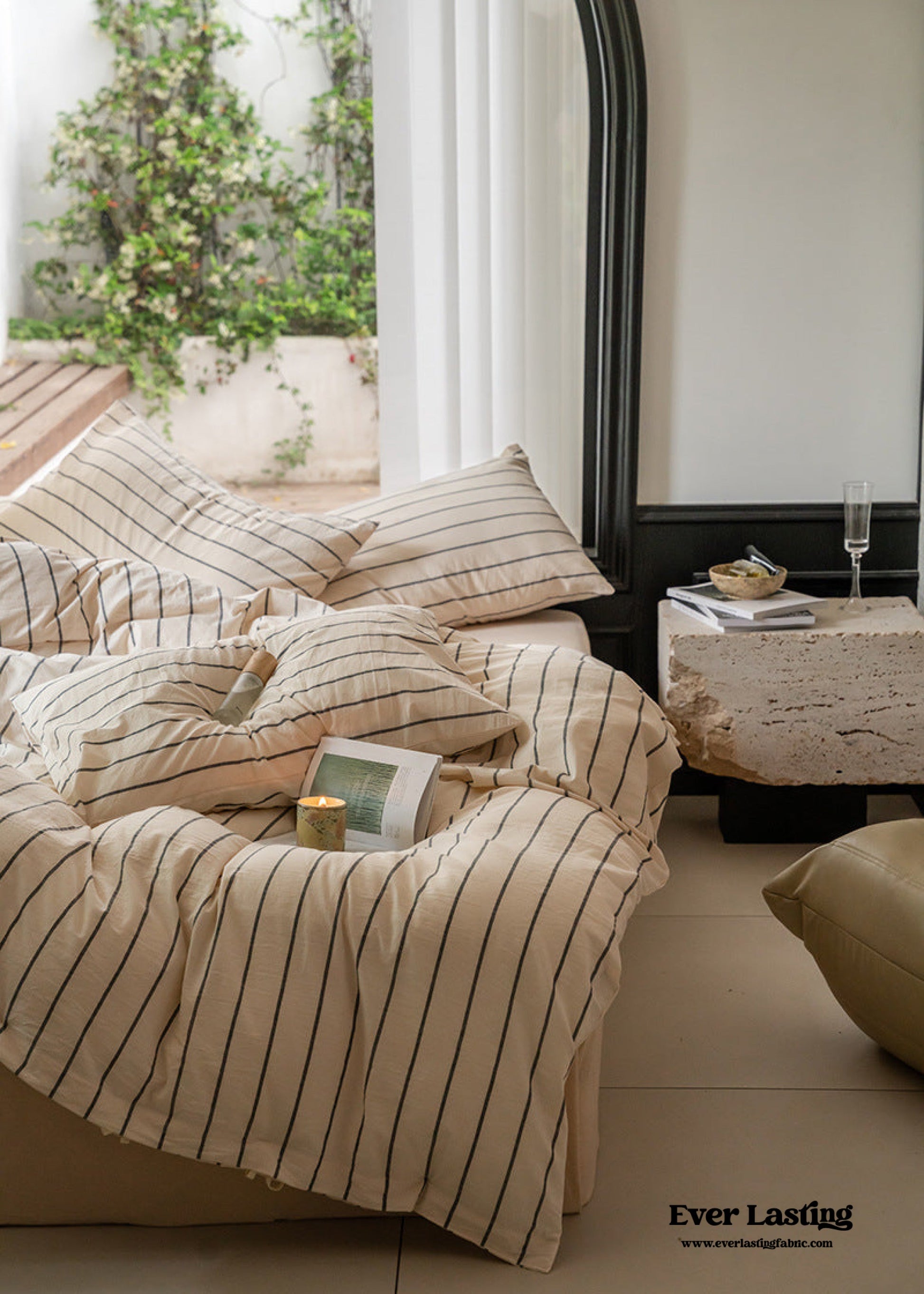 Minimalist Vertical Stripe Bow Ties Bedding Set / Beige Custard