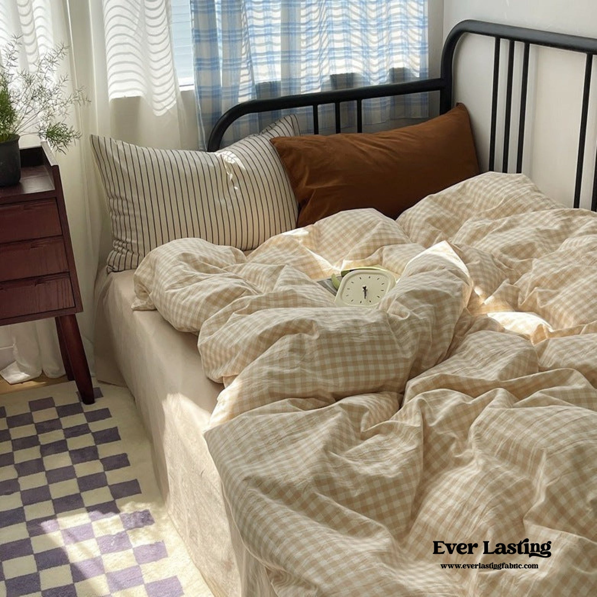 Mixed Gingham Striped Bedding Set / Brown