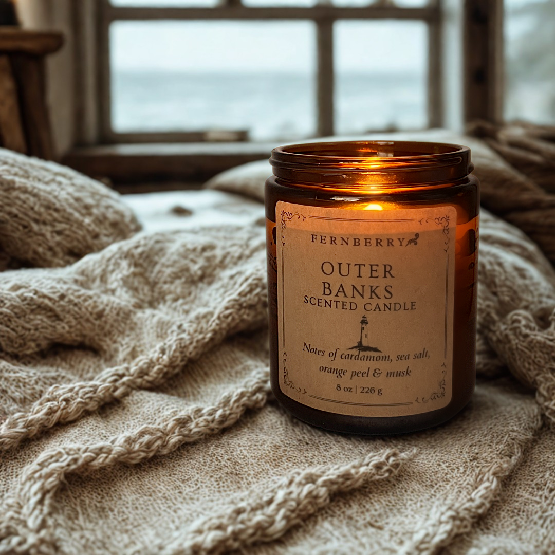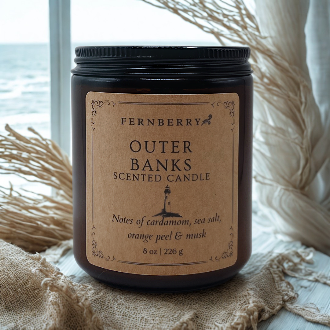 Outer Banks captures the coastal magic of a seaside escape with airy sea salt, ocean breeze, sun-warmed driftwood, and bright citrus notes. A soft musk lingers like salt on skin after a day by the surf.