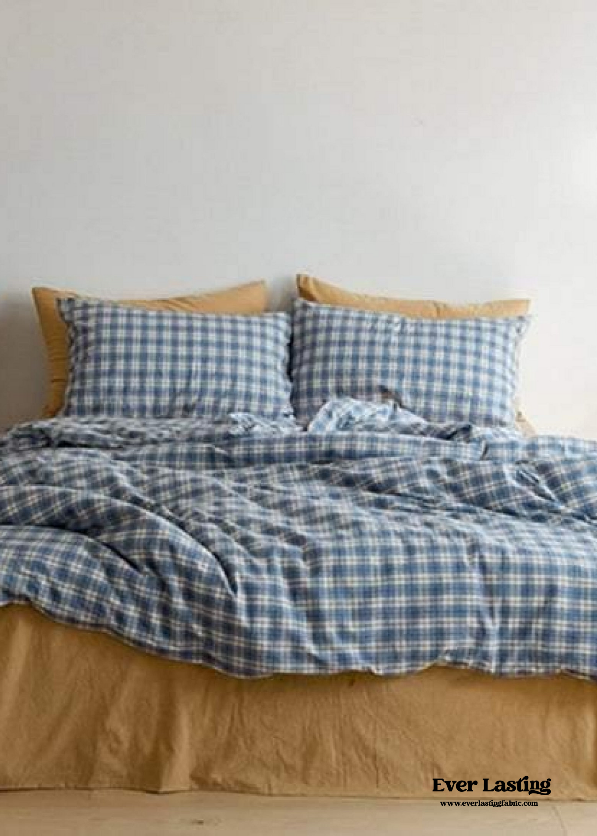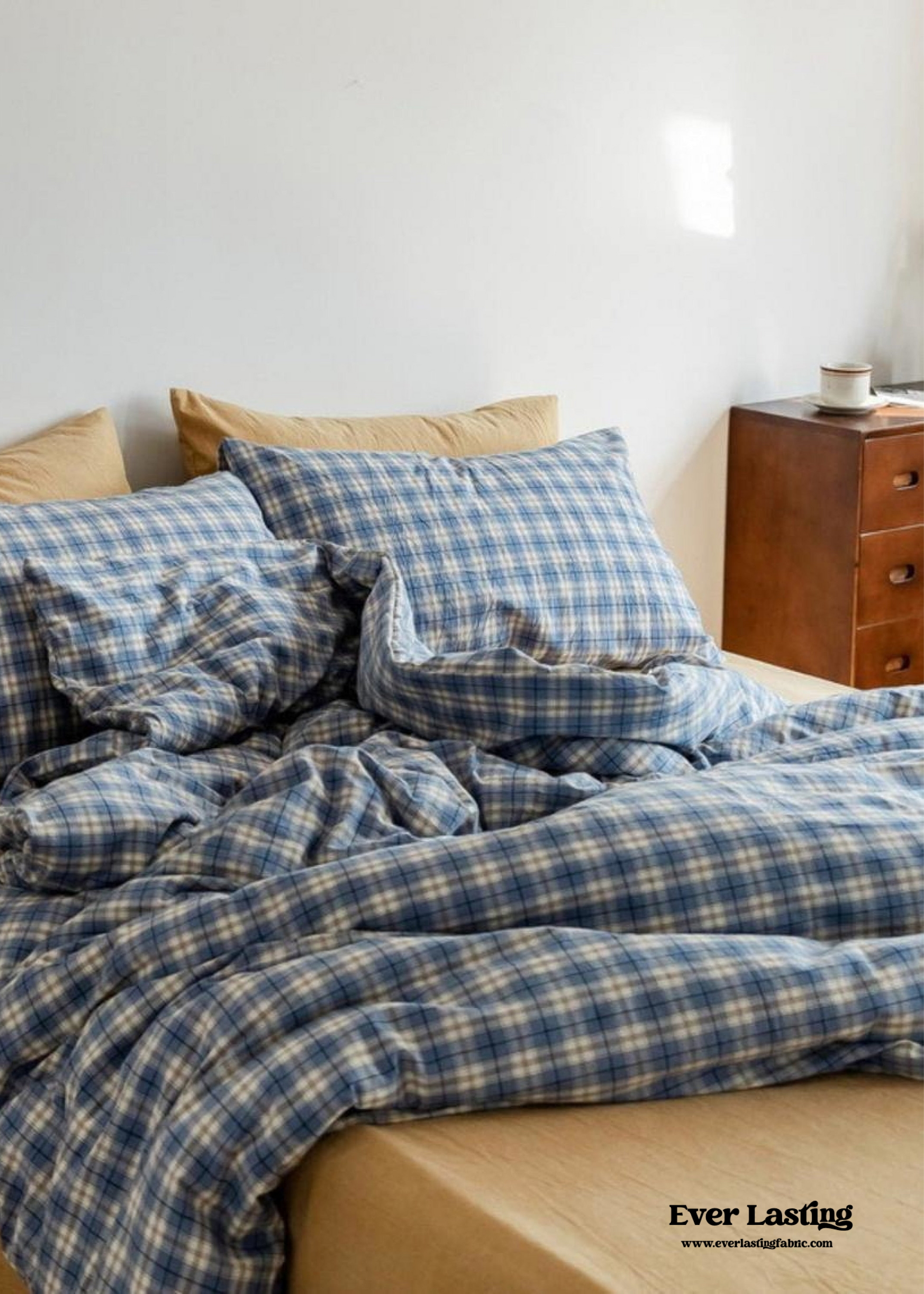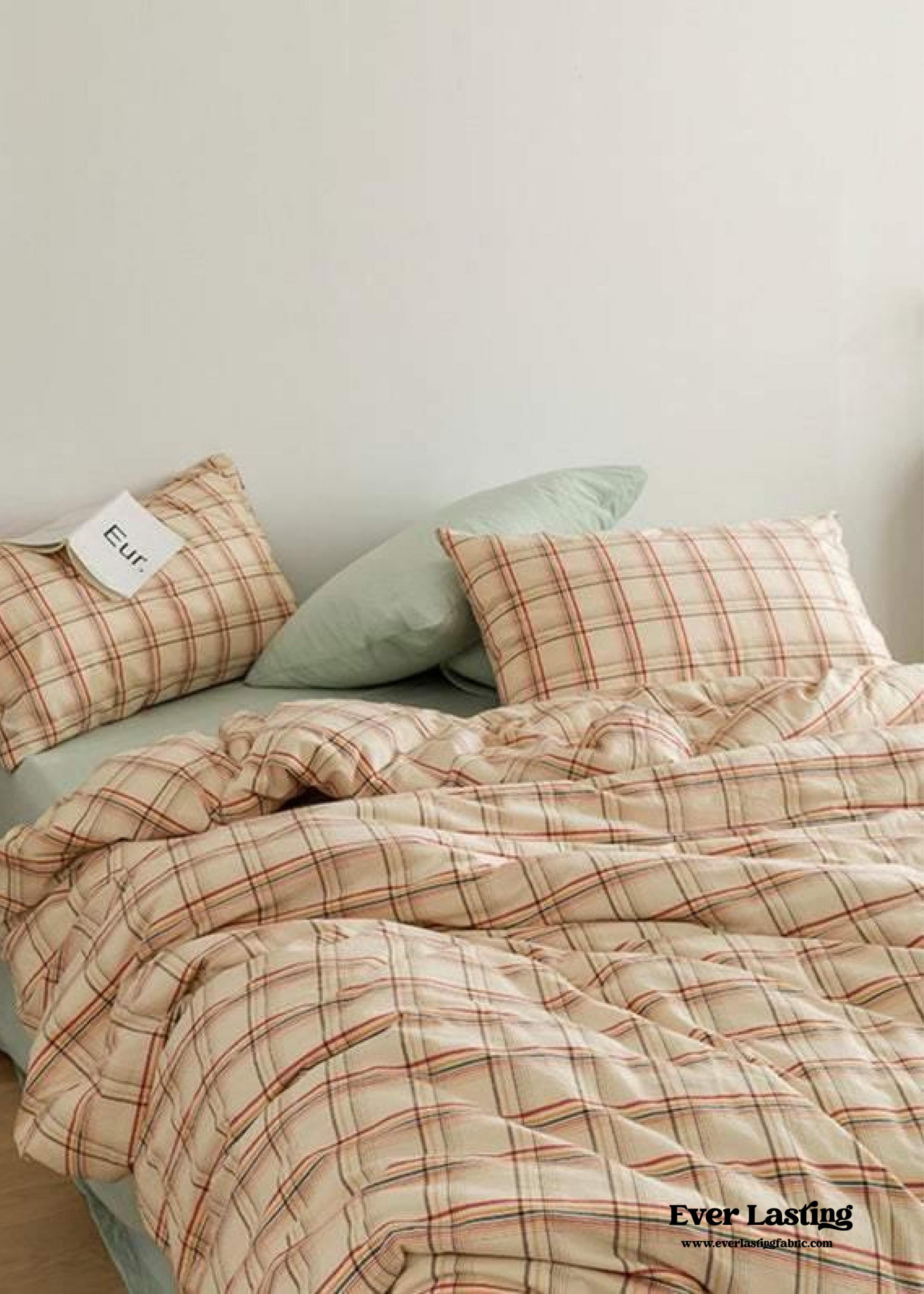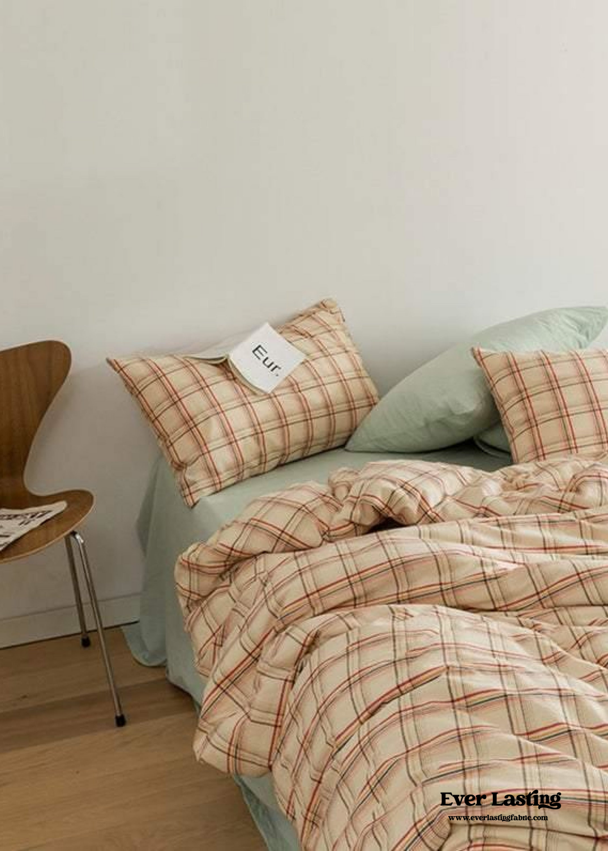 Effortlessly beautiful. Our plaid bedding set is the perfect combination of colors and pattern. This styled set comes with a plaid duvet cover, pillowcases and a solid color bed sheet. Made with 100% cotton material, enjoy the set as it gets softer with every use!