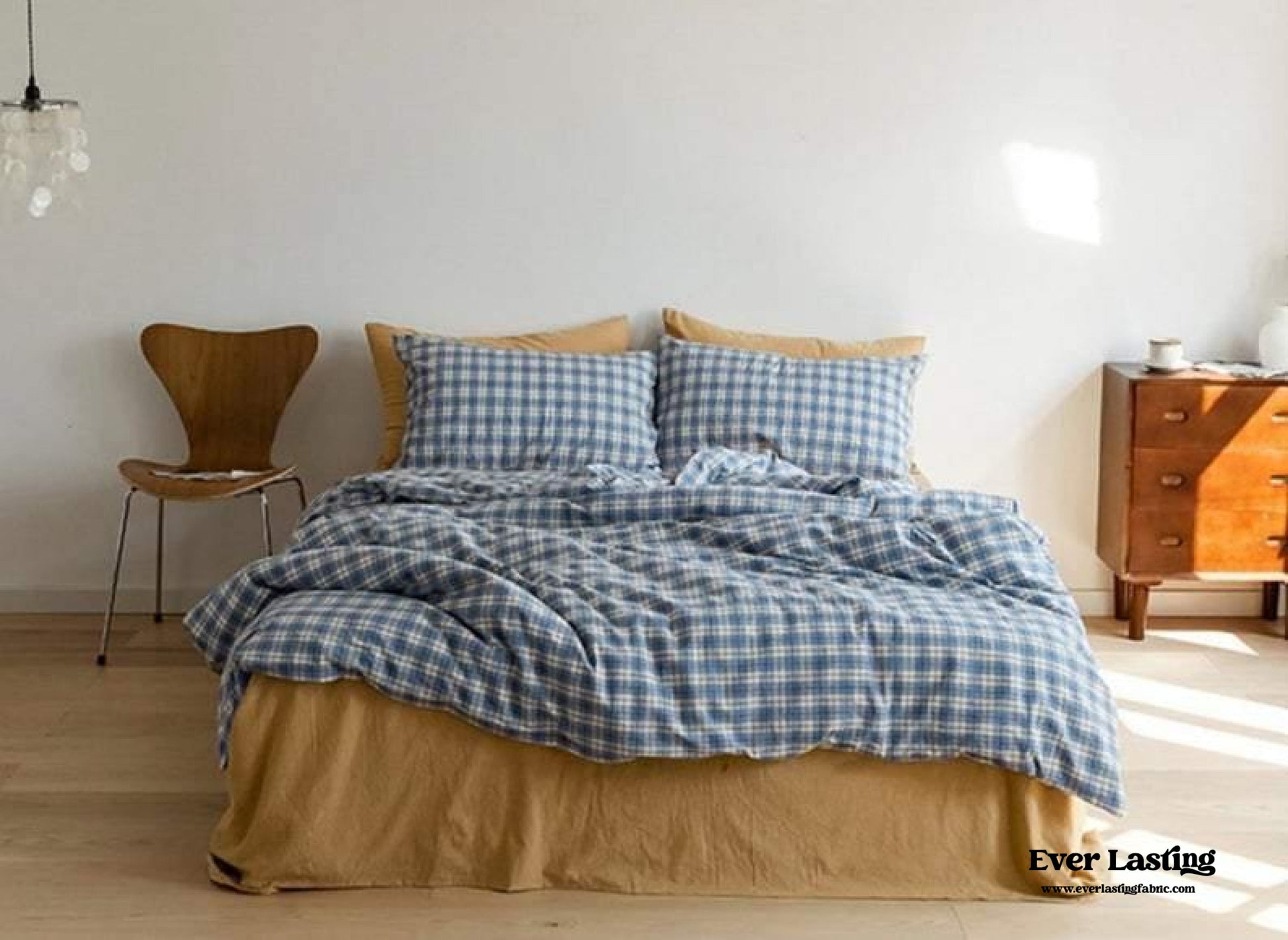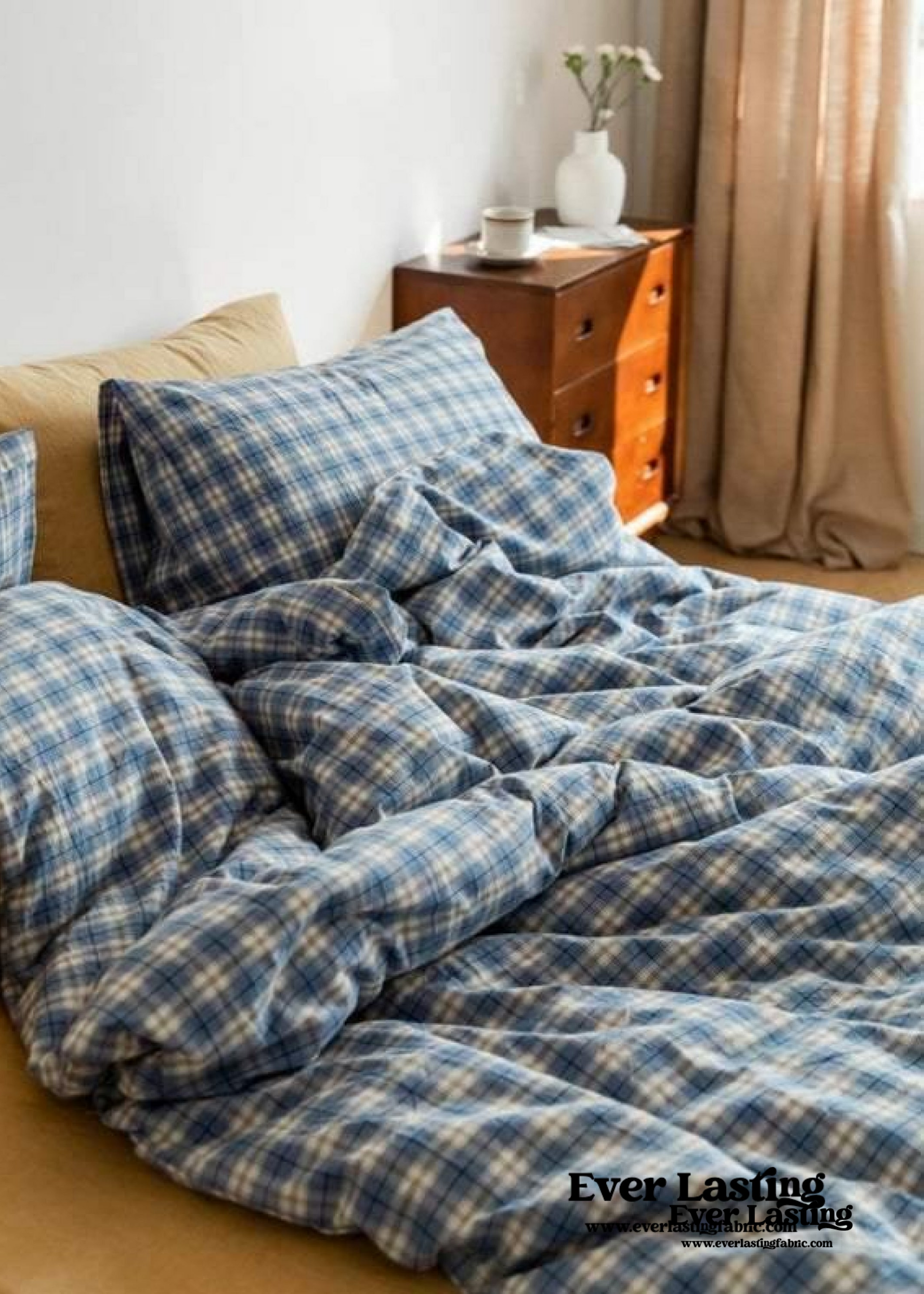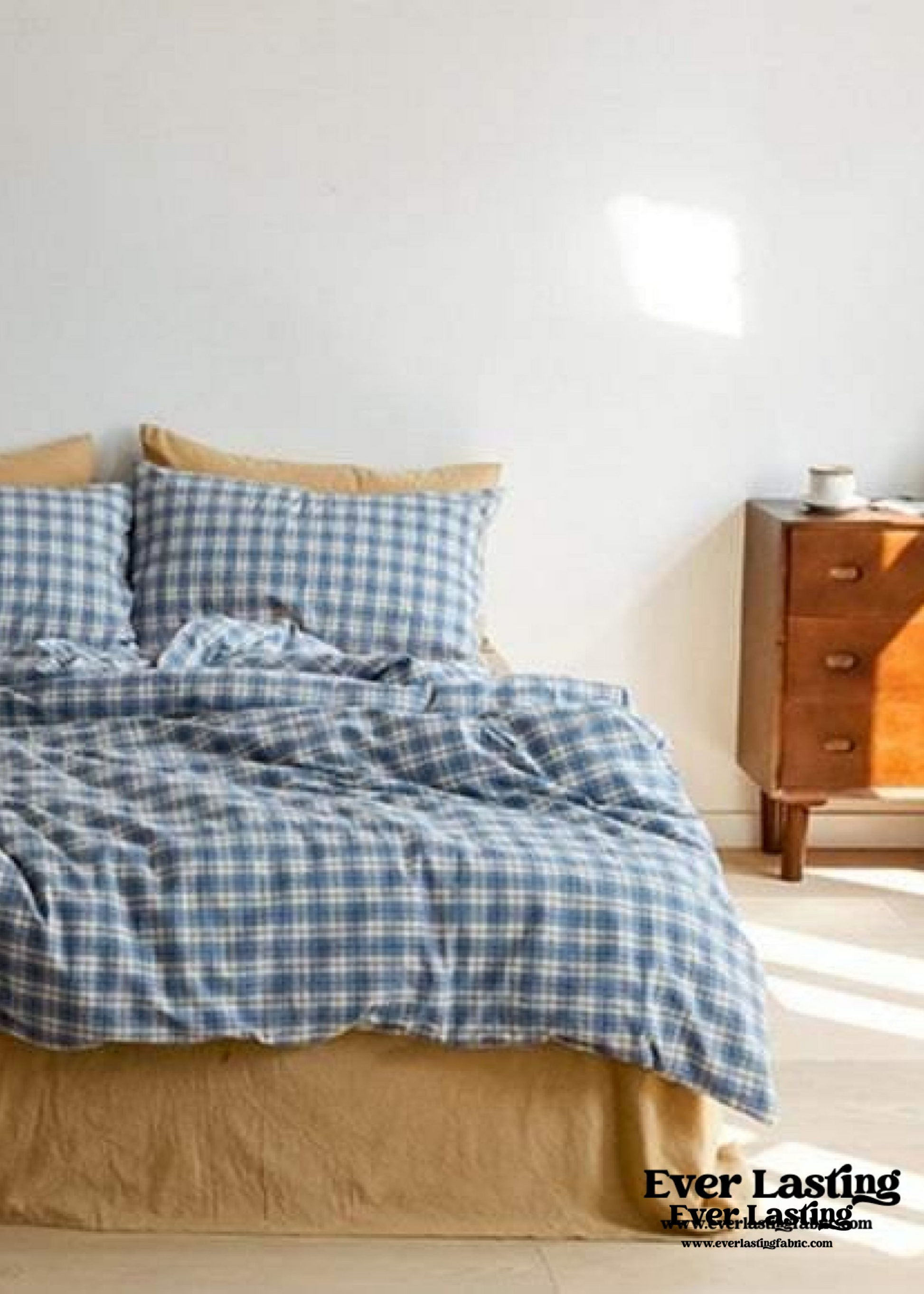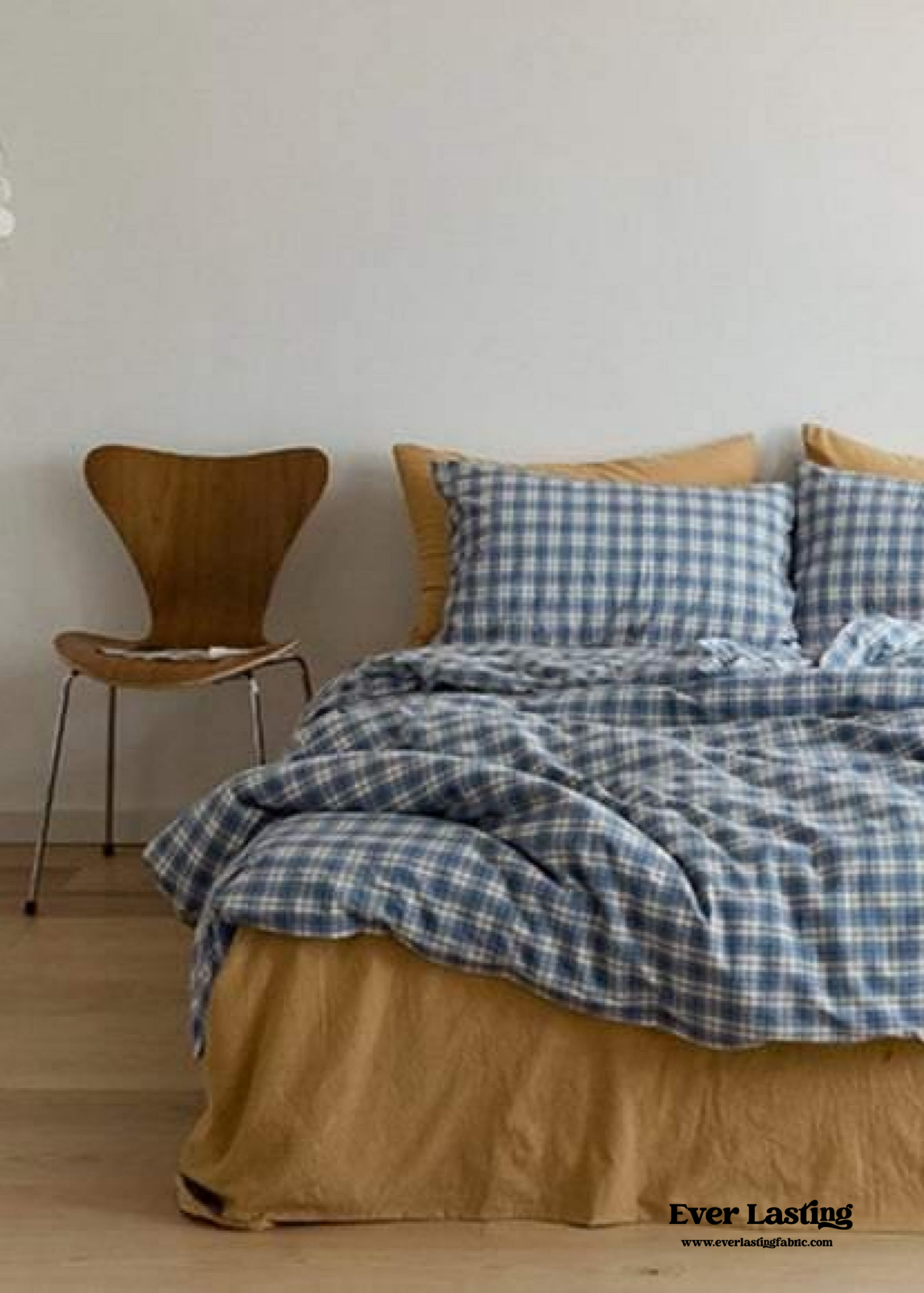 Effortlessly beautiful. Our plaid bedding set is the perfect combination of colors and pattern. This styled set comes with a plaid duvet cover, pillowcases and a solid color bed sheet. Made with 100% cotton material, enjoy the set as it gets softer with every use!