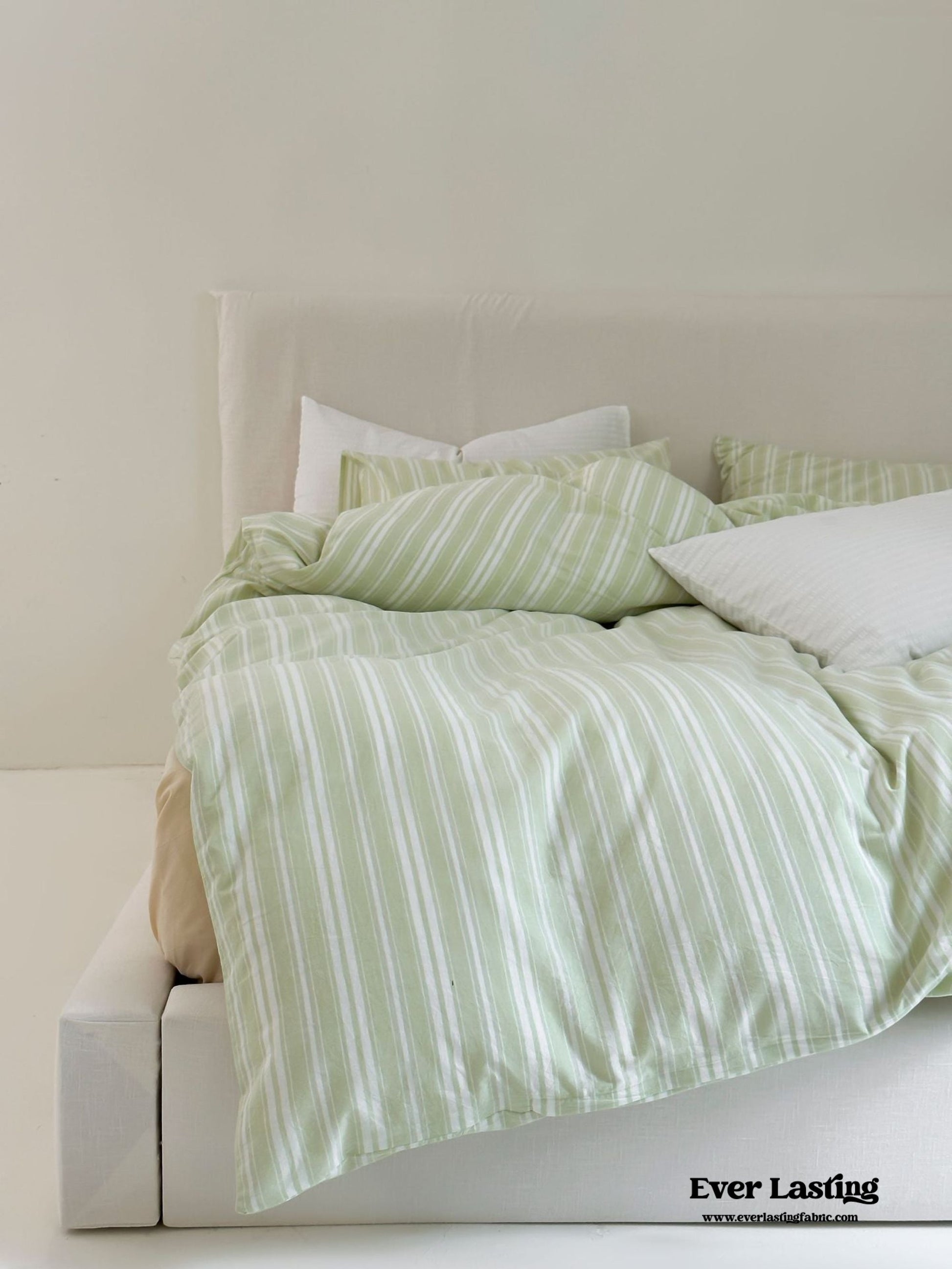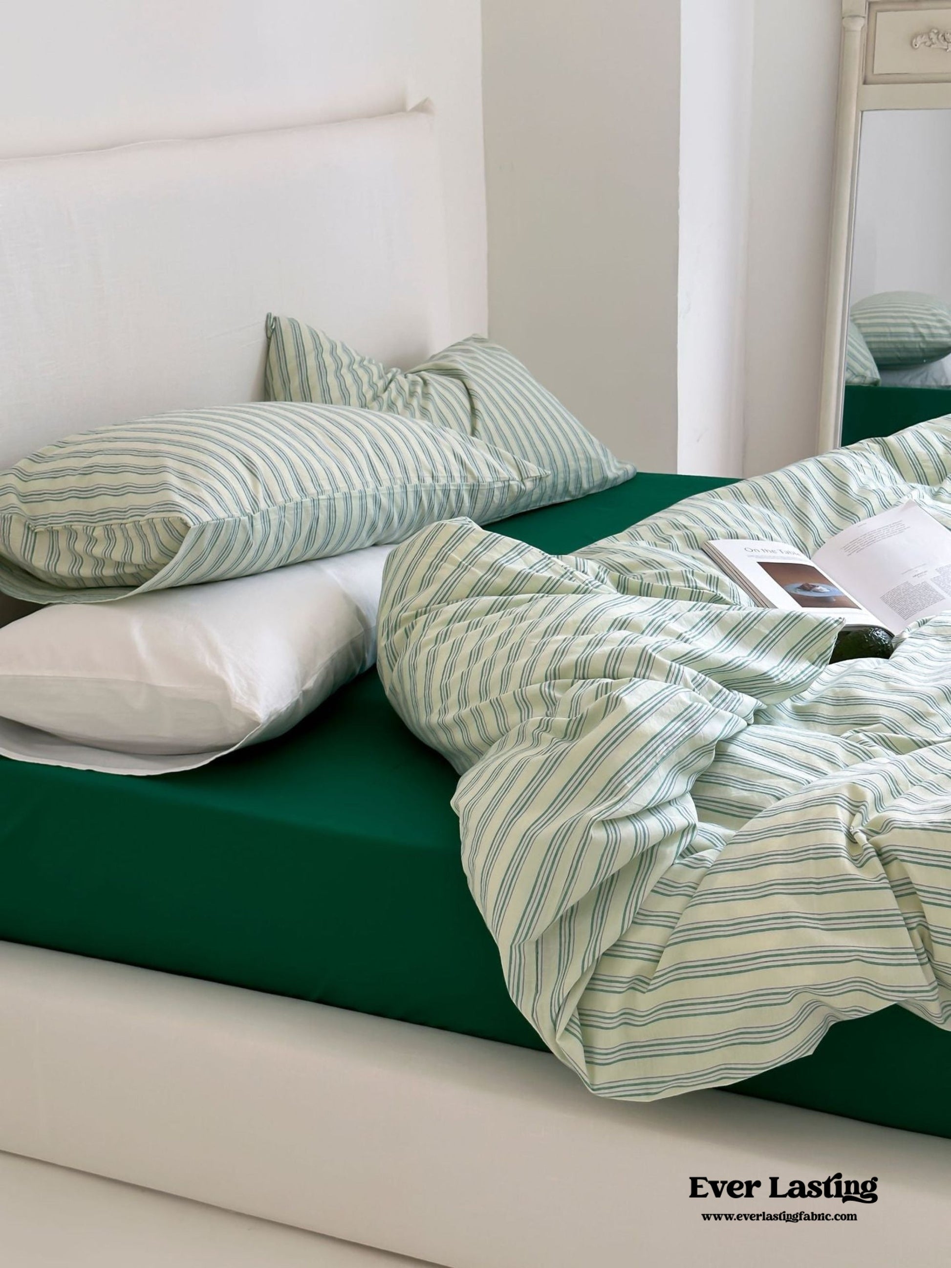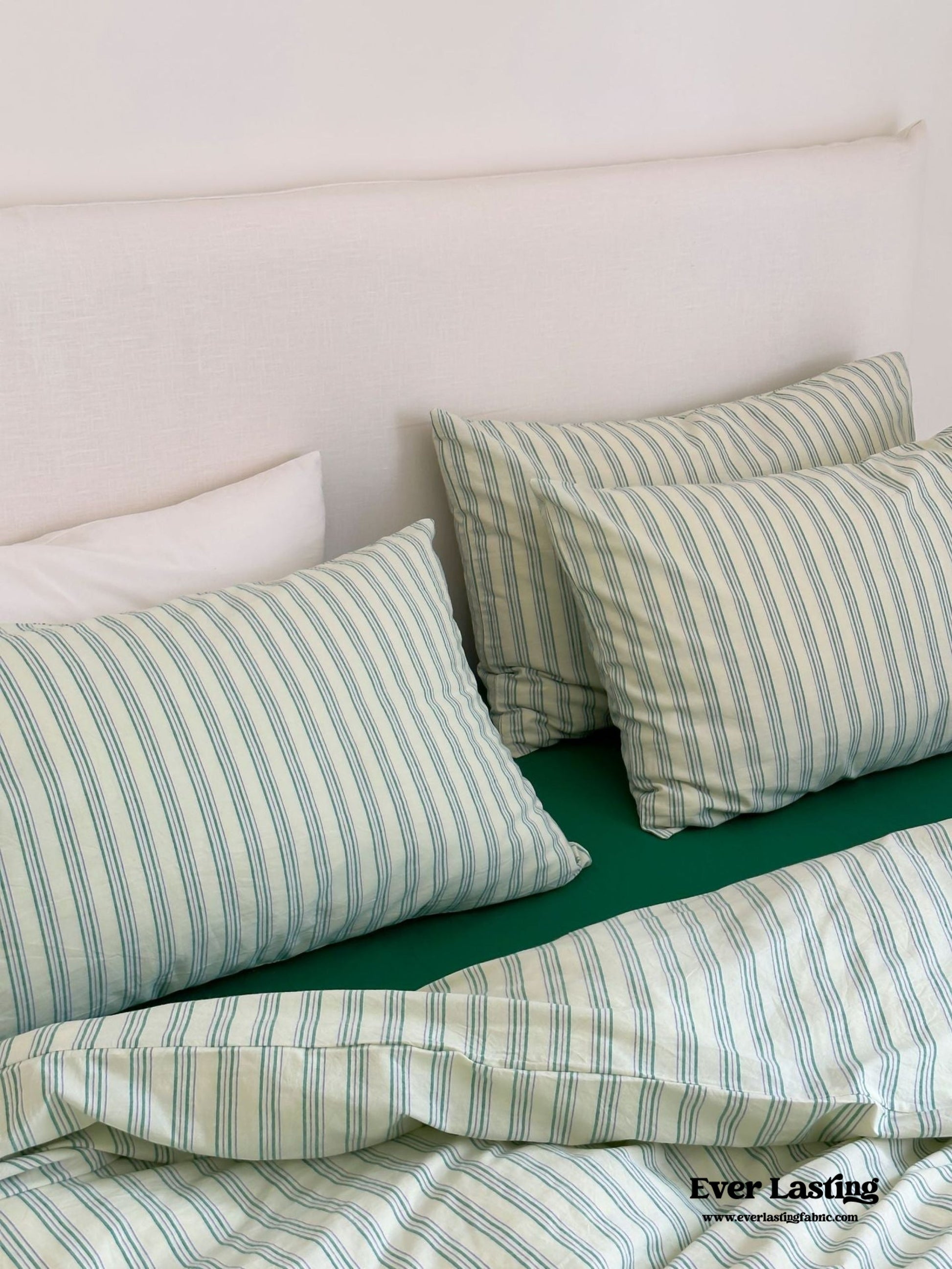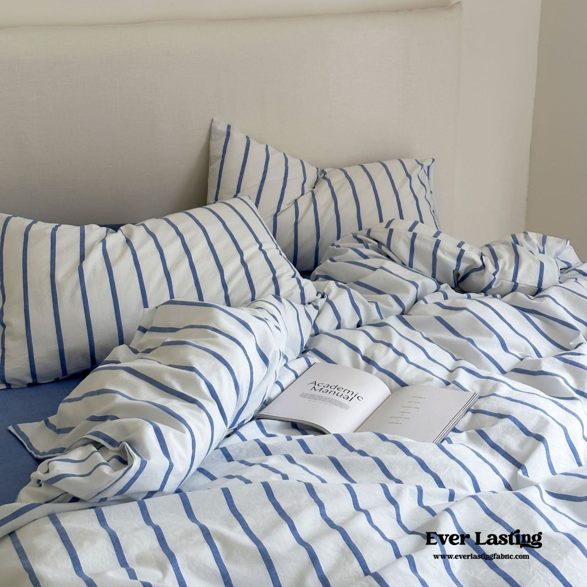 Elevate your sleep experience with our Refreshing Washed Cotton Stripe Bedding Set. Crafted from 100% washed cotton, this set offers a combination of casual elegance and ultimate comfort. The timeless stripe pattern adds a touch of sophistication to your bedroom decor. Each duvet cover comes with corner ties and a high-quality invisible zipper for easy use and a secure fit. Complete with a sheet, duvet cover, and pillowcases, our Washed Cotton Stripe Bedding Set offers a cohesive and inviting look. Transform your sleep space into a casual oasis of relaxation and style with this exceptional bedding set.