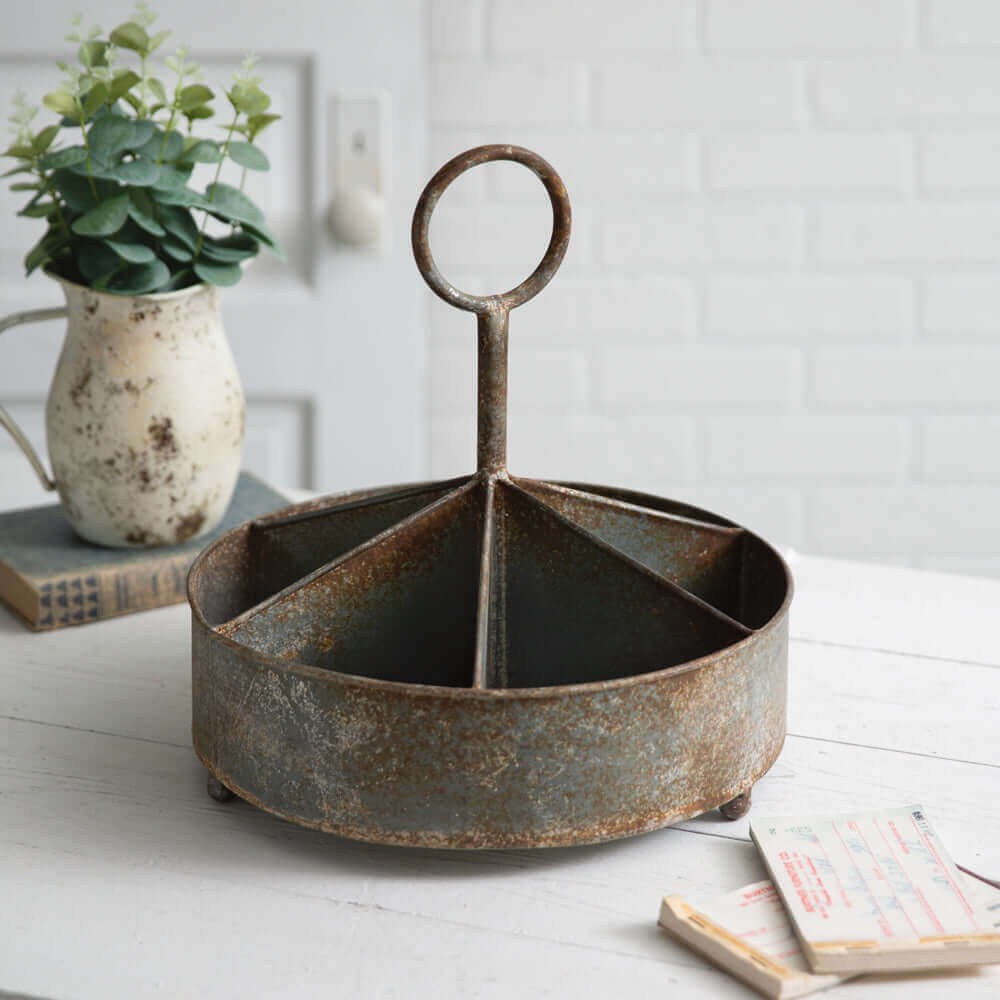 Round Rustic Antique-Inspired Metal Caddy