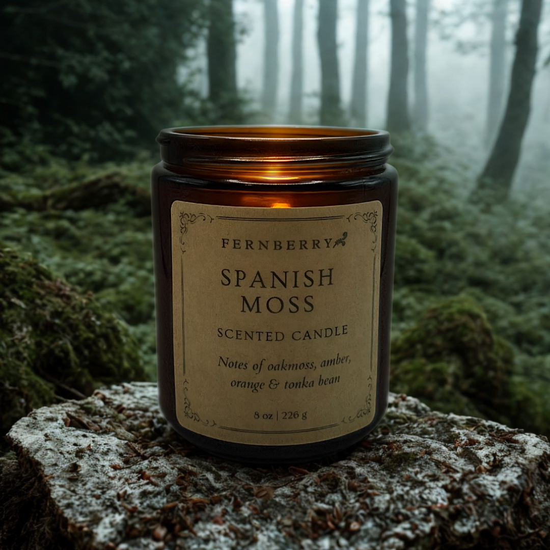 Timeless, sophisticated, and alluring—Spanish Moss opens with bright notes of orange and grapefruit balanced by fresh sage. Soft lavender in the heart adds delicate floral and herbal nuances, while oakmoss, warm amber, and tonka bean create a rich, grounding base.