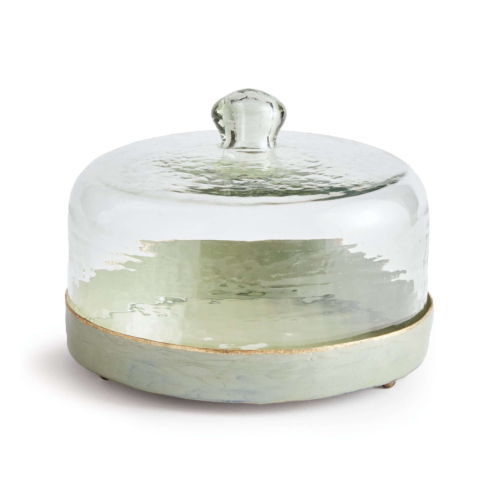 Vintage Hammered Glass Cloche with Green Enamel Tray